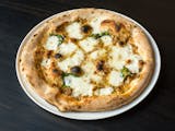 Fresh mozzarella, ricotta, gorgonzola, parmesan, garlic, and oregano (no tomato sauce).