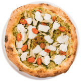 Housemade pesto, fresh mozzarella, and parmesan (no tomato sauce).