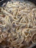 Fettuccine tossed with creamy homemade alfredo sauce.