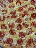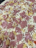 Pizza sauce, mozzarella cheese, ham & pineapple.