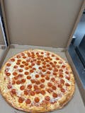 Pizza sauce, mozzarella cheese, pepperoni, ham, sausage & bacon.