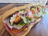 Pepperoni, sausage, ham, onion, mushrooms, bell peppers.