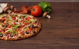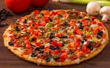 The classic combination, pepperoni, Italian sausage, salami, linguica, beef, mushrooms, black olives, bell peppers and onions on our classic red sauce.