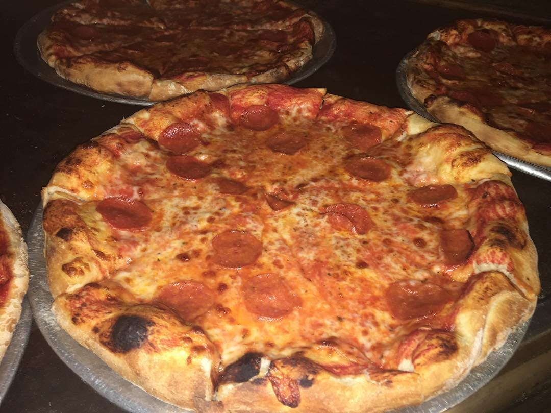 Topped with mushrooms, tomatoes, green peppers, onions, and olives.