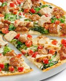 Grilled chicken, Italian sausage, spinach, Roma tomatoes, parmesan, zesty herbs, herb & cheese blend, parmesan, whole-milk mozzarella, and olive oil & garlic sauce.