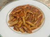 Pasta and Guanciale (Italian bacon), red onions and basil in a mild spicy tomato sauce.