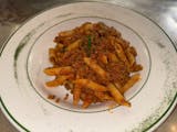 Shaved veal, beef and Italian sausage sautéed with mixed herbs in a rich tomato marsala sauce served over penne pasta.