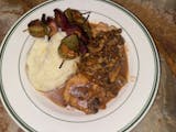 Sautéed chicken breast with marsala wine, mushrooms and shallots. Served with mashed potatoes and vegetables.