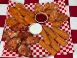 6 buffalo wings, 6 any flavor wings, 6 mozzarella sticks, 6 jalapenos poppers.
