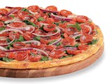 Signature red tomato sauce on our original crust, topped with mozzarella cheese, pepperoni, salami, Canadian bacon, smoked bacon, and Italian sausage.
