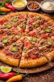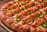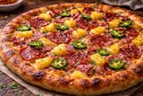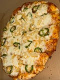 Habanero sauce, mozzarella, red onions, jalapeños, pineapple & garlic chicken.