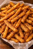 Crispy fries topped with pizza sauce and melted cheese. With no pepperoni.
