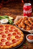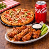 Any 12" Pizza, 12 Chicken Wings Bone In & One Soda Can Special