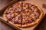 Bbq sauce, smoked gouda, mozzarella, chicken, red onions.