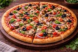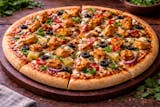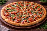 Red sauce, mozzarella, onions, tomatoes, bell peppers, mushrooms & olives.