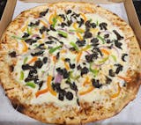 Tomato Sauce, Mozzarella, Caramelized Onion, Tomatoes, Fresh Garlic, Spinach, Bell Peppers