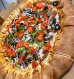 Premium mozzarella, mushrooms, onions, green peppers, black olives, and tomatoes.