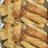 Strips of fresh pizza dough topped with butter, sugar, and cinnamon. Served with vanilla or espresso icing.