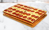 Fresh dough made daily. 10-piece pepperoni cheesy bread, topped with garlic sauce, fresh Parmesan cheese and Italian spices.