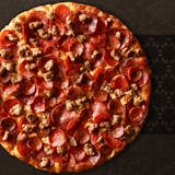 A Legendary Combination. Pepperoni, Italian sausage, salami, linguica, mushrooms, green peppers, yellow onions, black olives on zesty red sauce.