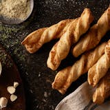 Our famous Garlic Parmesan Twists. Rolled fresh daily and baked to perfection with fresh garlic, our three cheese blend and Parmesan cheese. Served with your choice of dipping sauce.