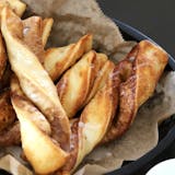 Our famous twists, rolled in a brown and white sugar cinnamon mixture and topped with a delicious powdered sugar glaze.