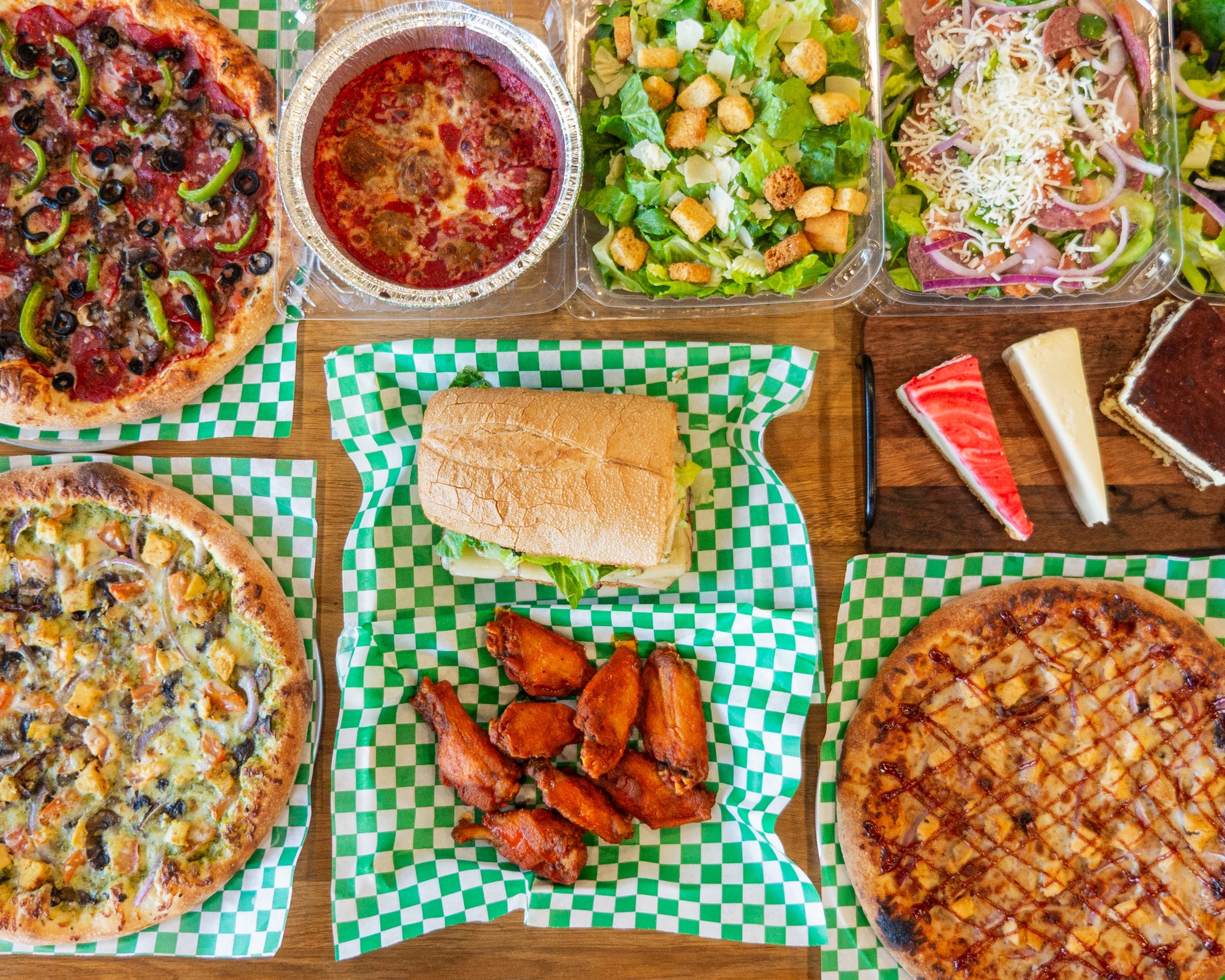 Salami, pepperoni, ham, provolone, tomato, lettuce, red onion, pepperoncini, Italian vinaigrette.