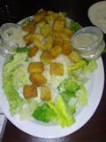 Fresh cut romaine lettuce tossed in Caesar dressing and topped with shredded parmesan cheese and garlic cheese croutons.