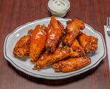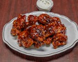 Fresh wings tossed with your choice of spicy, BBQ, teriyaki, Hawaiian plum or sweet chili sauce, all bursting with flavor. This image is with barbecue sause.