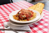 Breaded chicken and homemade pasta tossed in marinara sauce and covered with cheese.