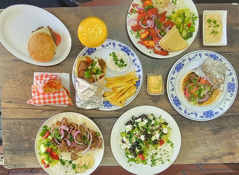 Smashed falafels mixed with potatoes, fresh lettuce, onions, tomatoes, and Tzatziki sauce wrapped in lavash bread, then grilled. Vegetarian.