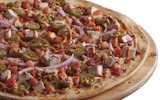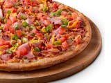Signature red tomato sauce on our original crust, topped with mozzarella cheese, pepperoni, salami, Canadian bacon, smoked bacon, and Italian sausage.
