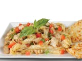 Penne right all-natural grilled chicken, mushrooms, black olives, and mozzarella cheese, all tossed in our creamy pesto sauce.