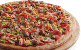 Signature red tomato sauce on our original crust, topped with mozzarella cheese, salami, pepperoni, mushrooms, green peppers, yellow onions, black olives, beef, and Italian sausage.