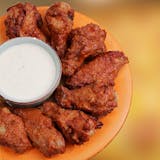 8 wings covered in Buffalo Sauce. Each order includes 1 side of ranch dressing.