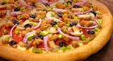 Our fresh dough, with marinara sauce and our two blend mozzarella cheese. Mushrooms, Green Peppers, Red Onions, Olives and tomatoes.