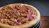 Marinara sauce, our two blend of mozzarella cheeses, prontoroni's chicken, bacon, red onions and a drizzle of our tasty bbq sauce.