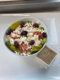 Romaine lettuce, spinach, tomato, pepperoncini, feta cheese, and Kalamata olives.
