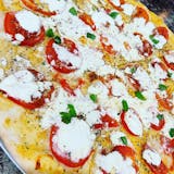 Tomato, ricotta cheese, mozzarella cheese, basil, olive oil. (Freshly made from scratch with quality & organic ingredients.)