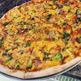 Signature BBQ sauce, cheese, red onions, chicken, drizzled BBQ sauce. (Freshly made from scratch with quality & organic ingredients.)