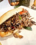 Premium cut of thinly sliced Ribeye, sautéed onion, sauteed red and green pepper, cremini mushroom, and American cheese.