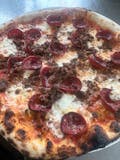 San Marzano tomato sauce, fresh mozzarella, pepperoni, sausage, fresh jalapeno, EVOO.