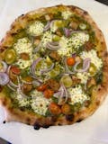 San Marzano tomato sauce, fresh mozzarella, baby spinach, oven-roasted eggplant, red & yellow peppers, and gorgonzola cheese.
