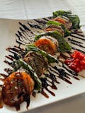 Philly steak, shredded mozzarella, roasted red peppers, black pepper onions, mushrooms, and spicy mayo.