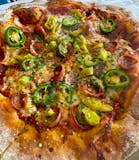 Sopressata (spicy salami), pepperoni, fresh jalapenos, pepperoncini