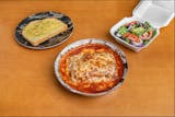 Spaghetti tossed in homemade meat sauce.