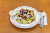 Lettuce, tomato, cucumber, pepperoncini, onions & black olives.