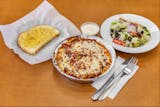 Ziti with mozzarella and tomato sauce baked to perfection in our oven.