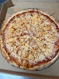 Buffalo sauce, mozzarella cheese, ghost pepper cheese, grilled chicken, red onions, buffalo sauce, and ranch drizzle.