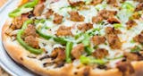 Thin crust brushed with extra virgin olive oil, topped with fresh sweet basil, garlic, diced tomatoes and cheese.